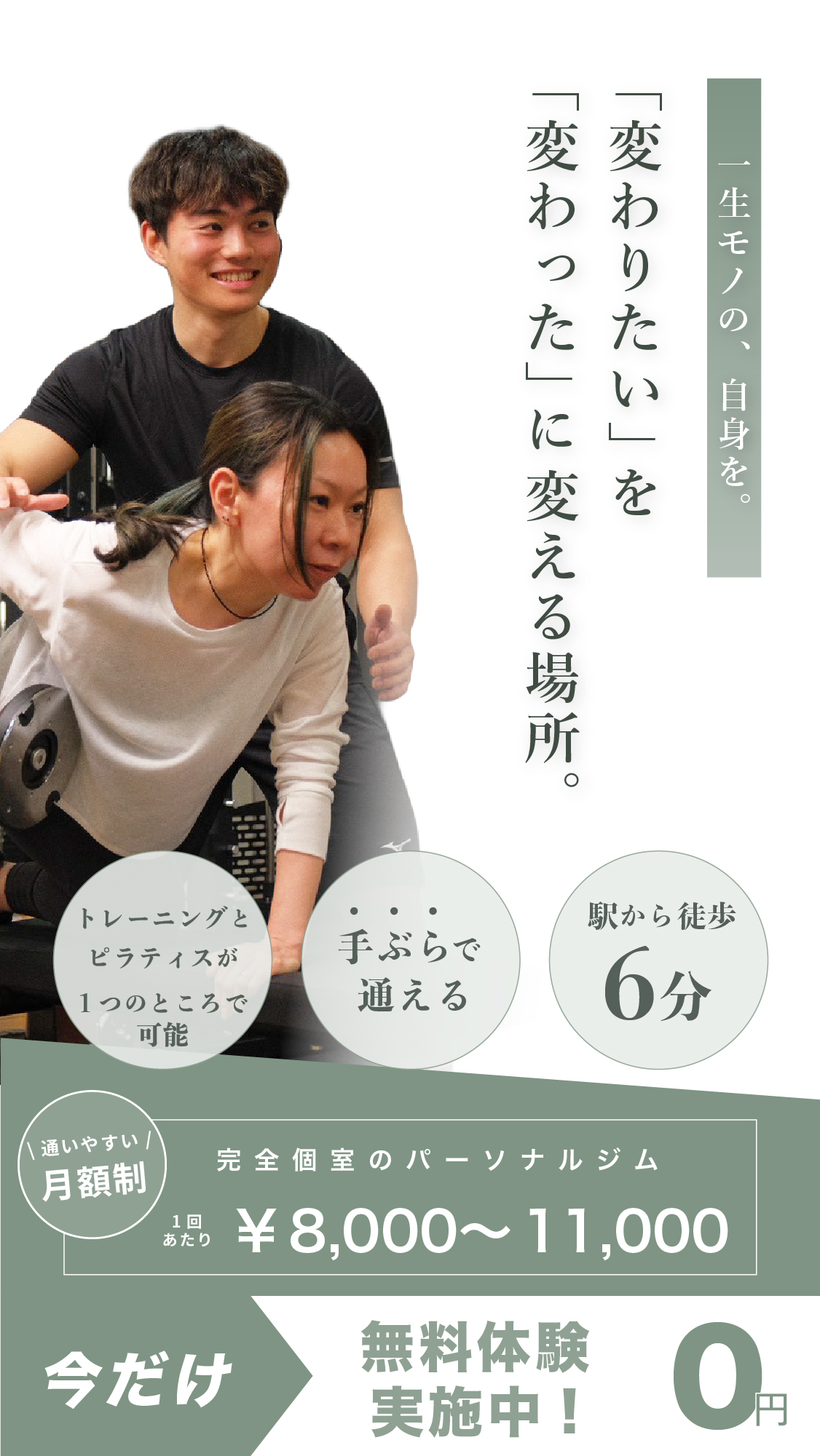 「変わりたい」を「変わった」に変え、ピラティスと筋トレの融合で一生モノの身体と自信をサポートします。