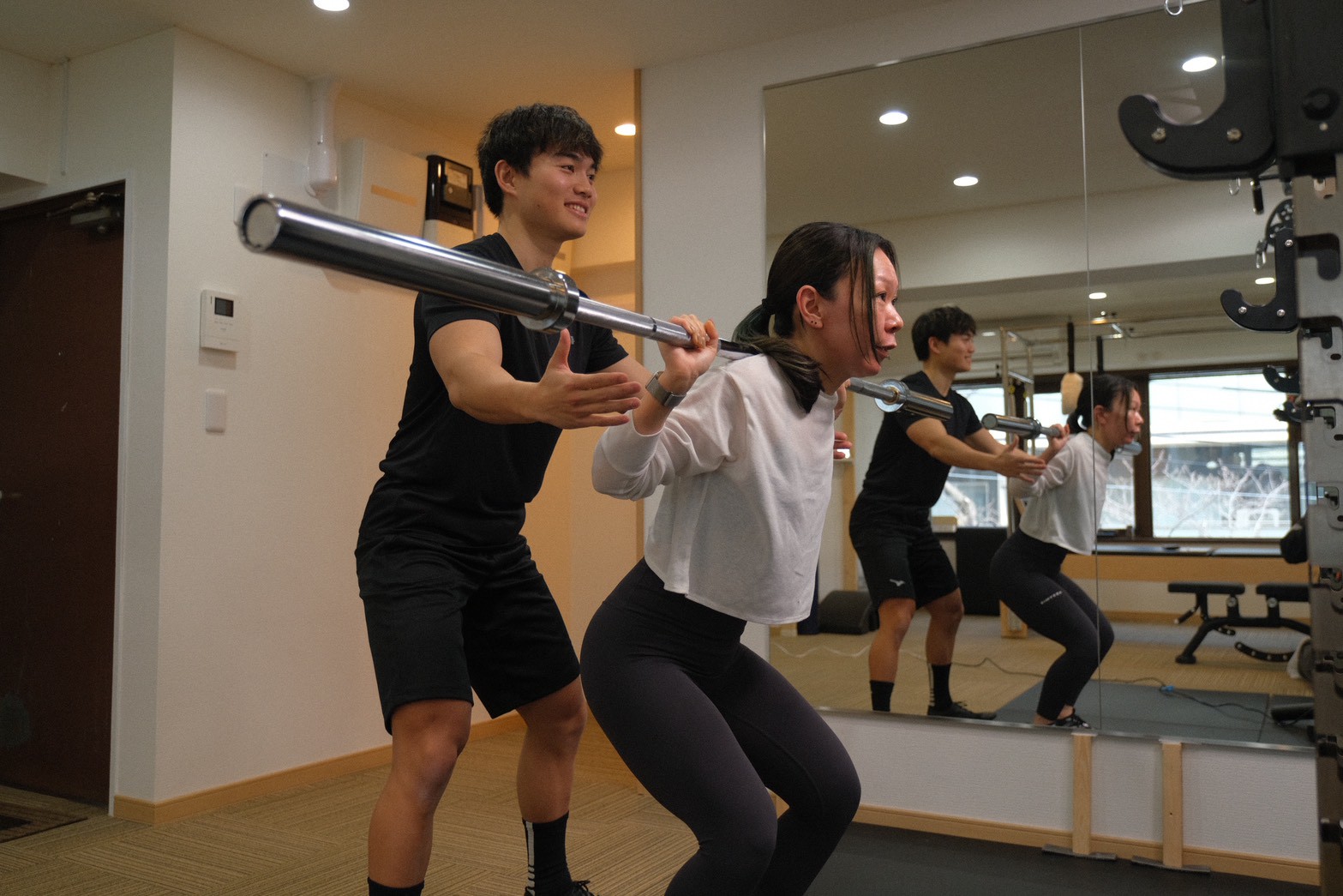 筋肉を引き締めるパーソナルトレーニングと、骨格の歪みを整え柔軟性や肩こり、腰痛等の改善に効果のあるピラティス。この2つをかけ合わせることで、ただ痩せるだけでなく、しなやかで力強い「動ける身体」へと導きます。ジムを通い分ける必要はなく、一つの場所で効率よく理想の自分を目指せます。